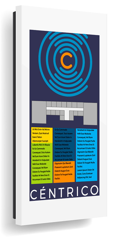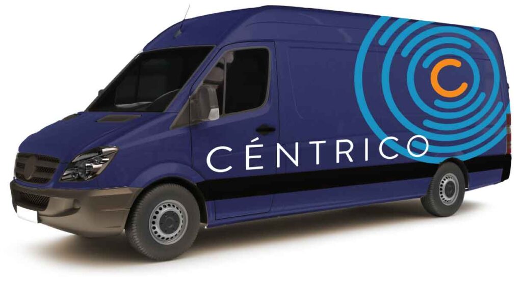 I developed a logo of a simple C, surrounded by larger c-shaped concentric curves that amplified and alternated as they became larger to reflect the idea of Céntrico as being the central hub. Although the main logo comprised six of these curves. In other applications, these curves could multiply outward for a more striking effect.
